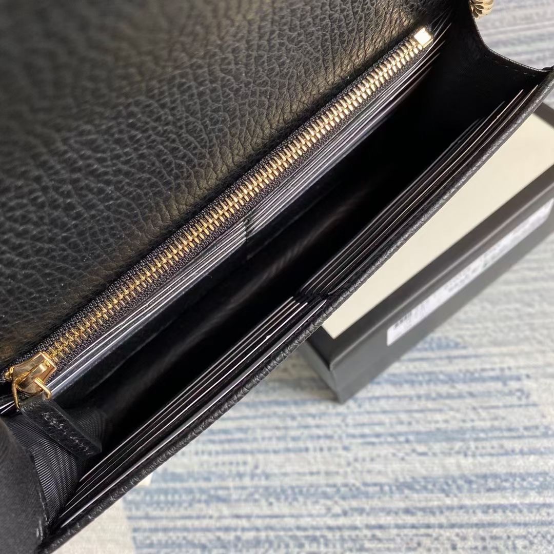 SAINT LAURENT CASSANDRE MATELASSÉ CHAIN WALLET IN GRAIN DE POUDRE EMBOSSED BLACK NOIR 22CM 377828BOW081000