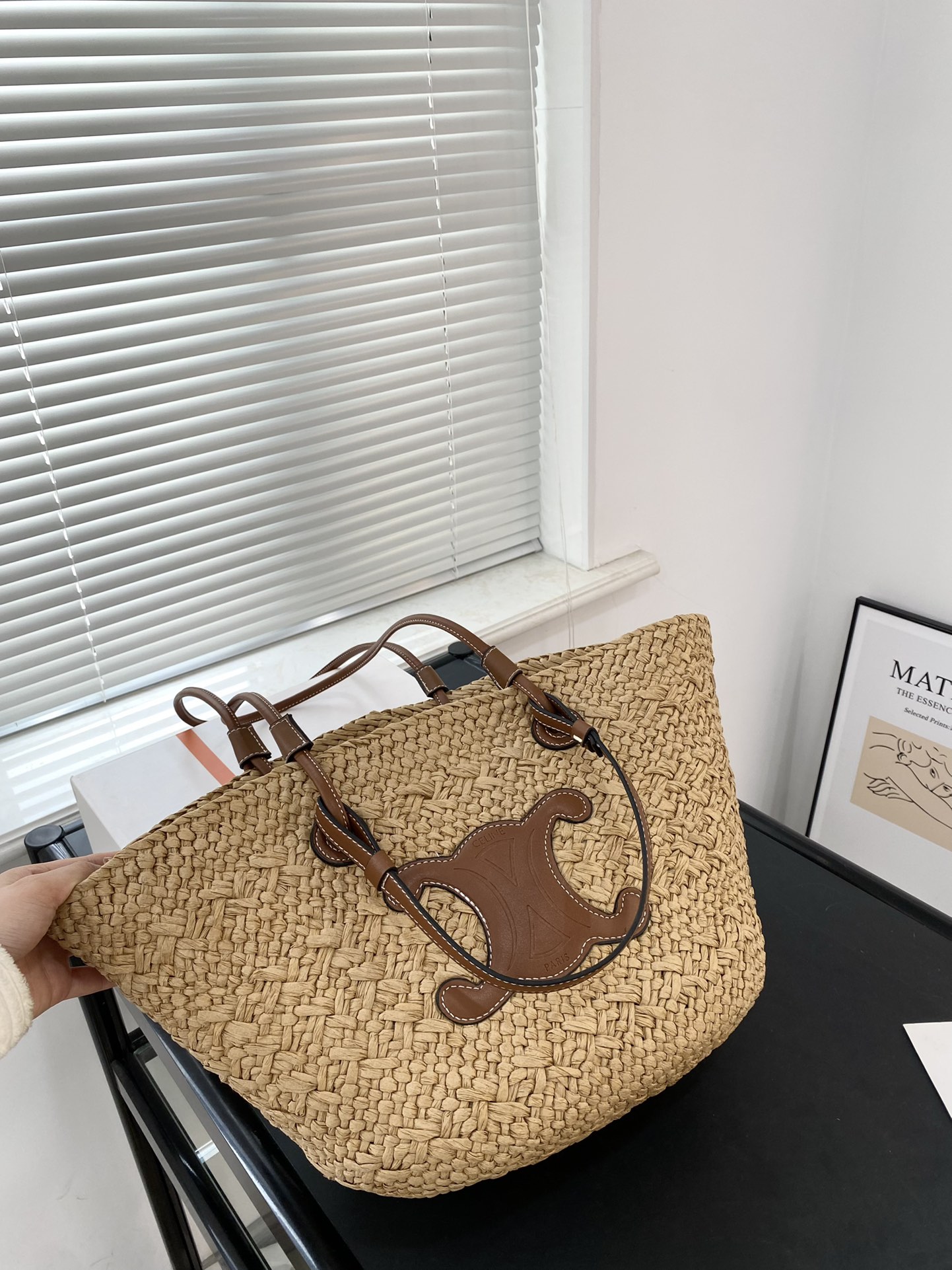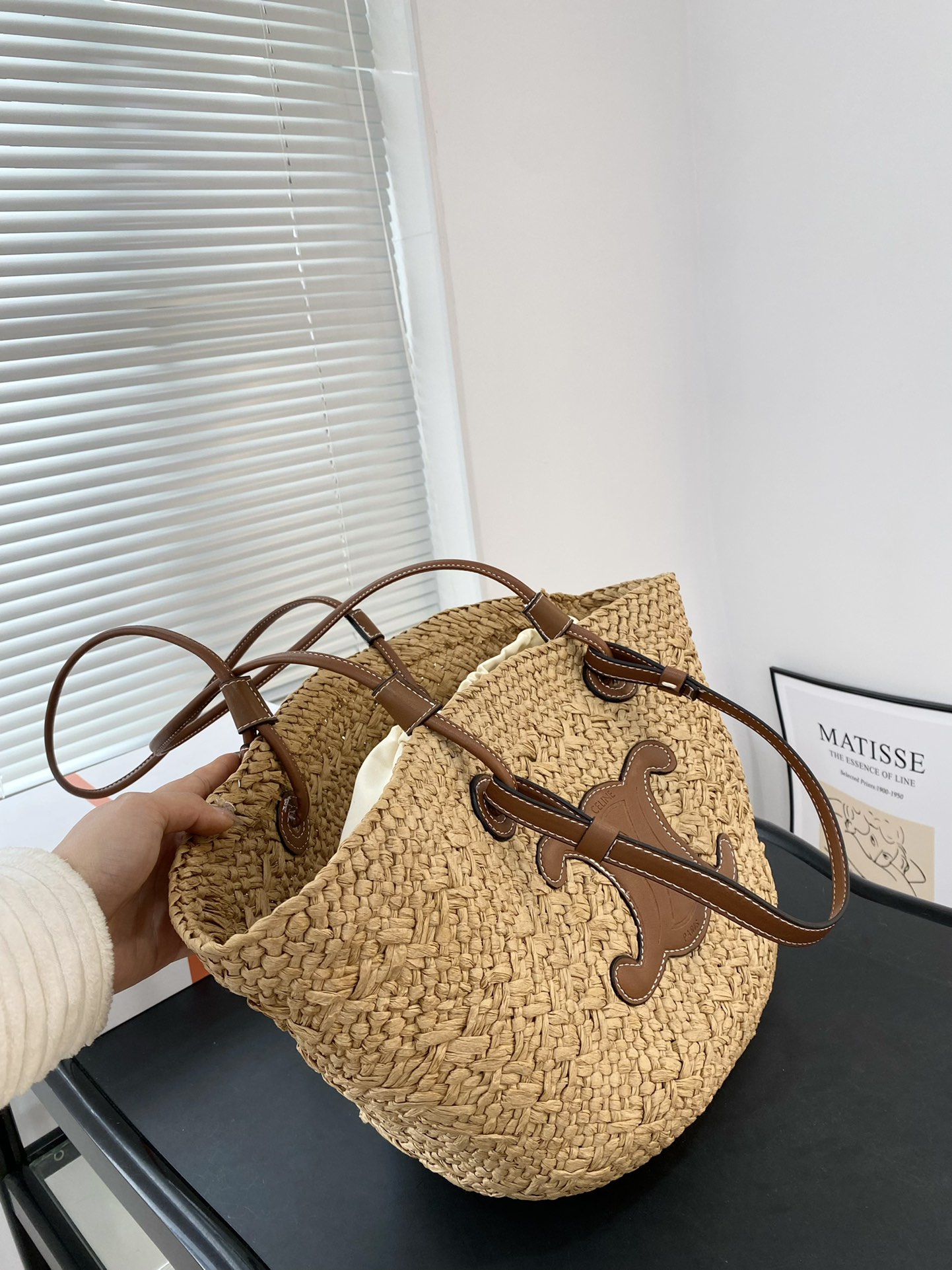 Celine Triomphe Panier In Raffia Tan 31cm / 12.2in