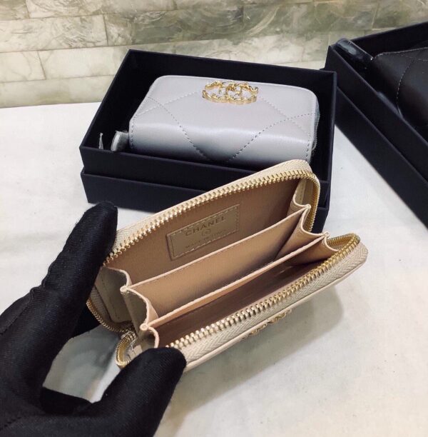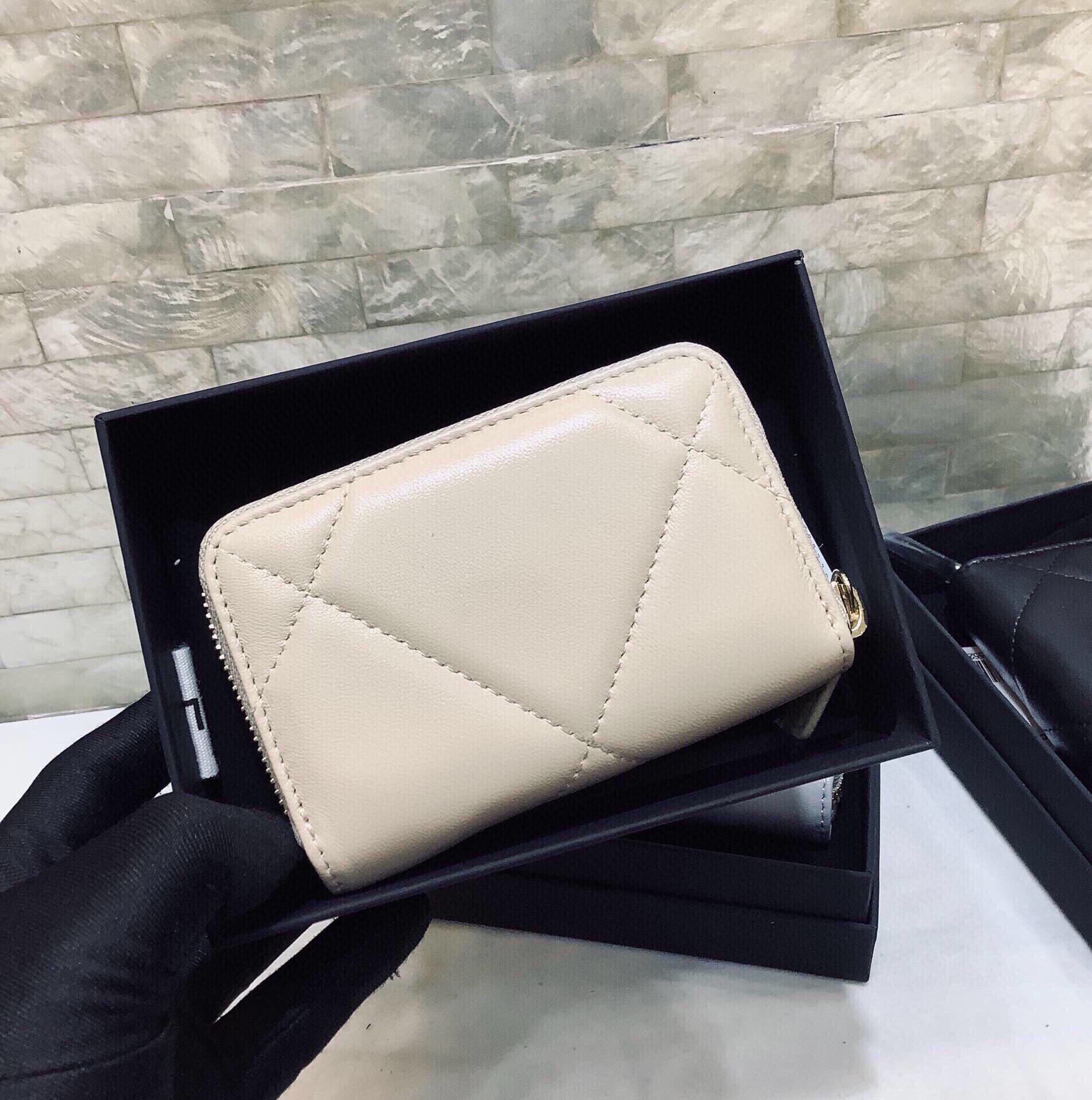 CHANEL 19 CARD HOLDER WITH ZIPPER LEATHER CREAM WALLET