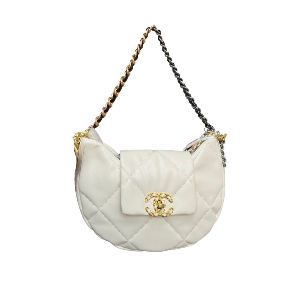 CHANEL 19 HOBO BAG MIXED METAL HARDWARE WHITE 28CM