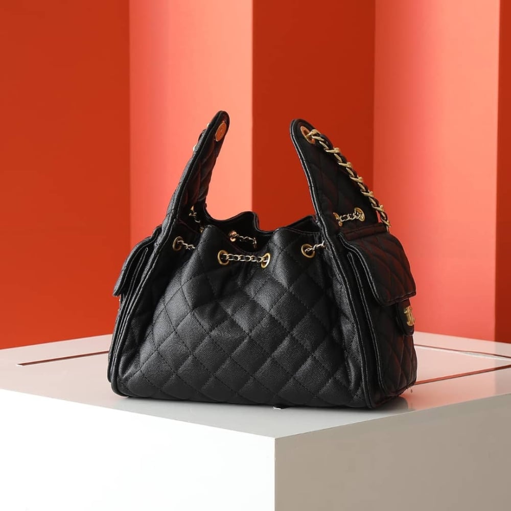 Chanel 25 Small Handbag Grained & Gold-Tone Metal Black AS5293 B20304 94305 / 26 cm / 10.2 inches