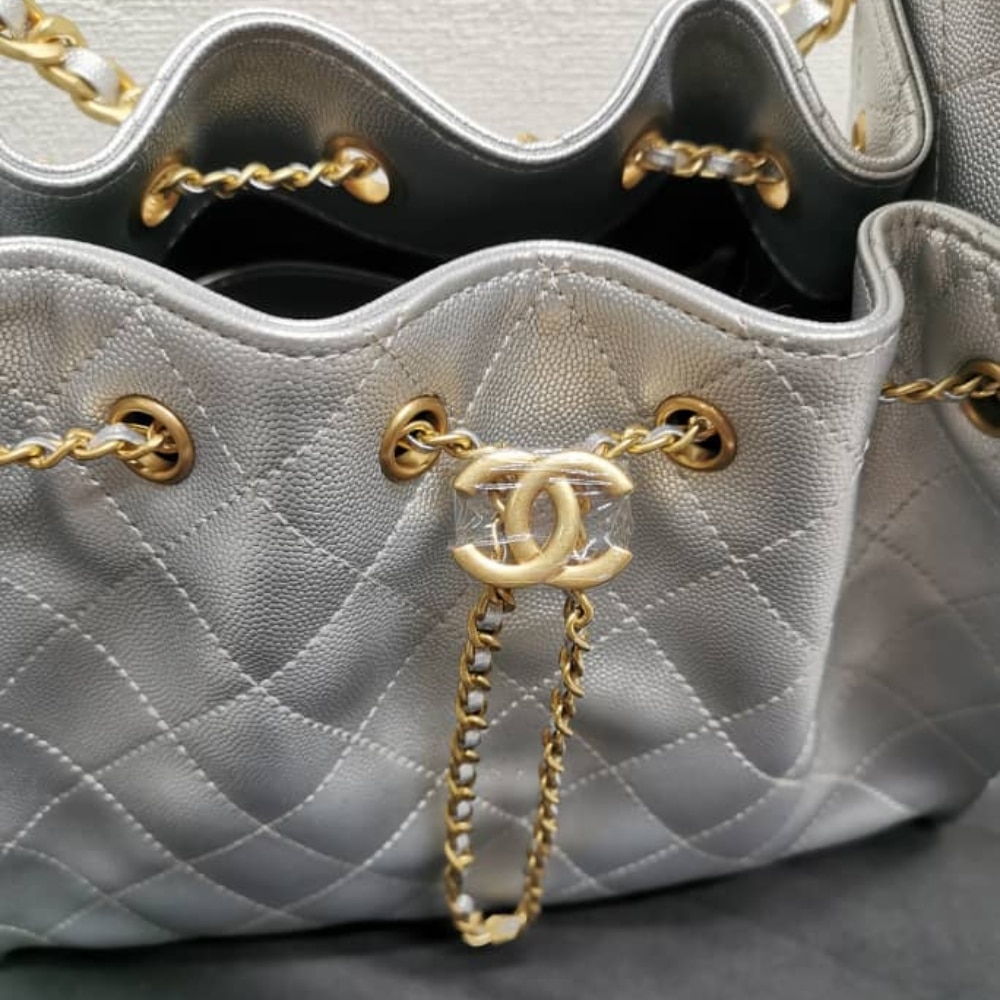 CHANEL 25 SMALL HANDBAG METALLIC GRAINED AND GOLD TONE METAL SILVER 26CM AS5293 B20405 NZV67