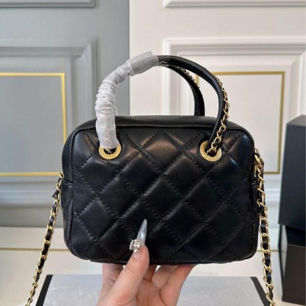 CHANEL 25C CHAIN HANDLE BOWLING BAG BLACK 18CM