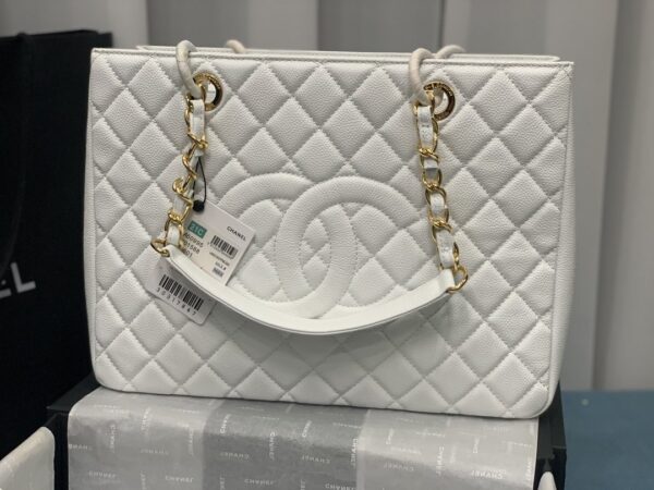 CHANEL BOLSA GRAND TOTE GOLD HARDWARE WHITE 33CM
