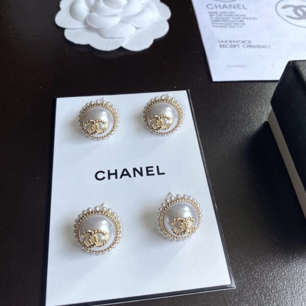CHANEL BUTTON PEARL EARRINGS