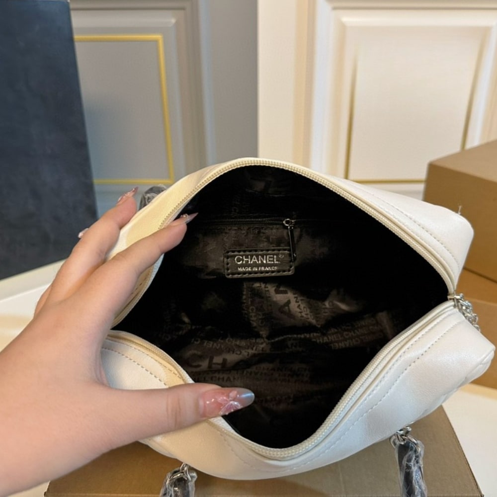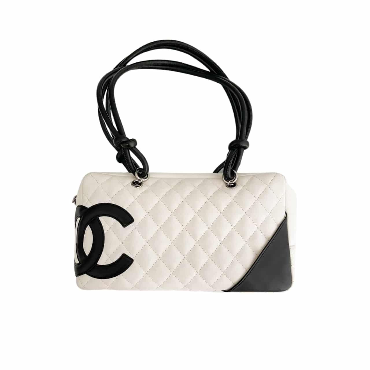 CHANEL CAMBON BOWLER BAG QUILTED LEATHER WHITE AND BLACK 26CM