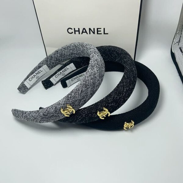 Chanel Cc Tweed Headband With Gold Hardware Black