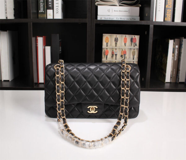 CHANEL CLASSIC FLAP BLACK GOLD HARDWARE 25CM
