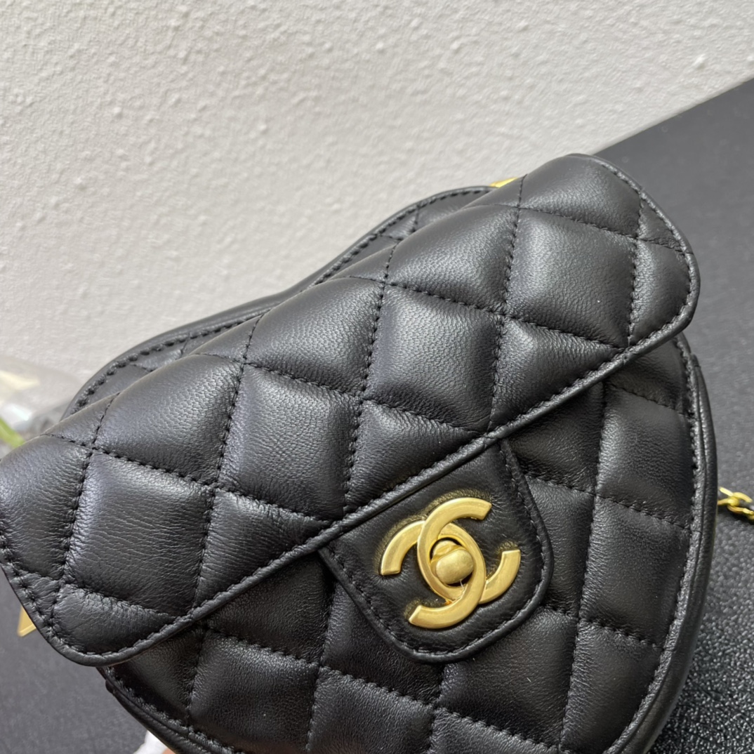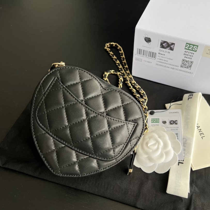 CHANEL HEART CLUTCH WITH CHAIN BLACK AP2784 13CM