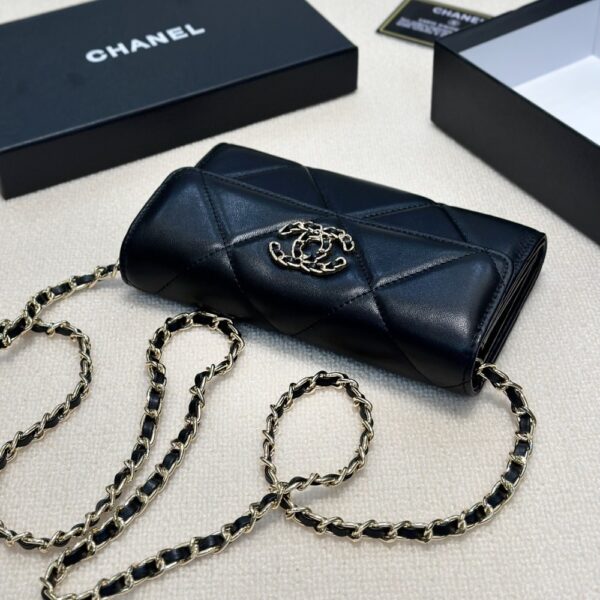SAINT LAURENT NIKI VINTAGE LEATHER CHAIN WALLET BLACK 19CM