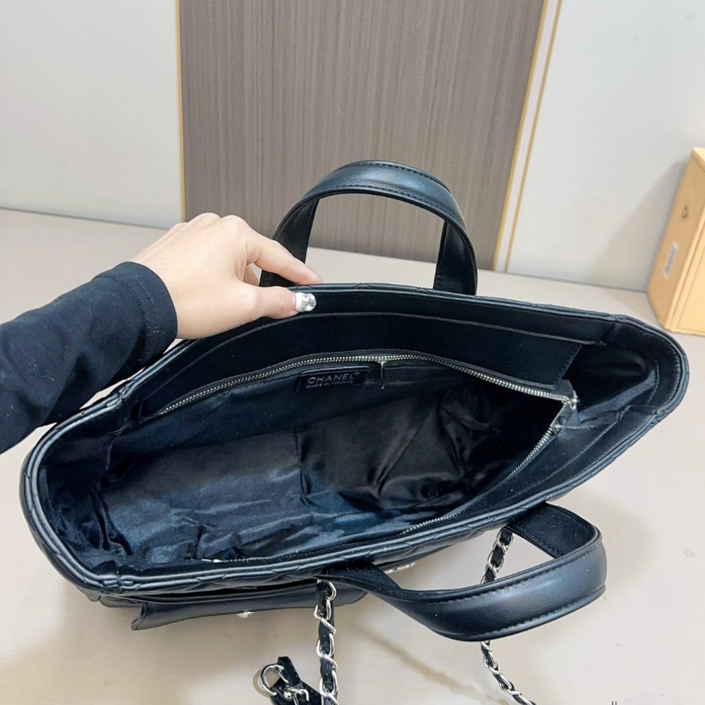 CHANEL LARGE ZIPPED SHOPPING BAG BLACK 32CM