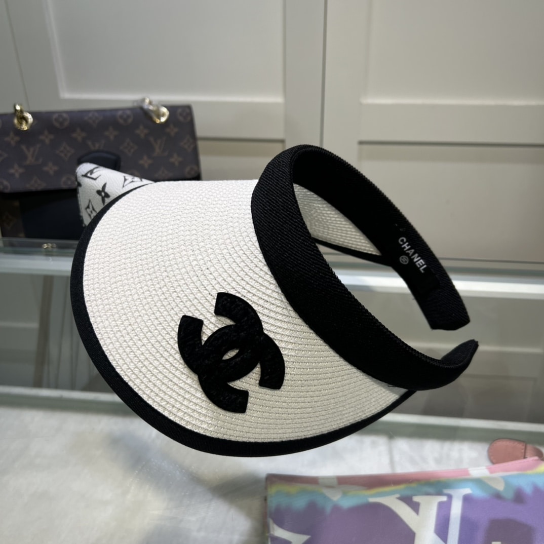 Chanel Straw CC Visor Hat / White