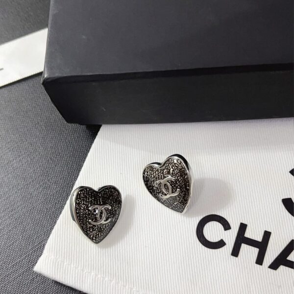 CHANEL STUD EARRINGS SILVER AND BLACK