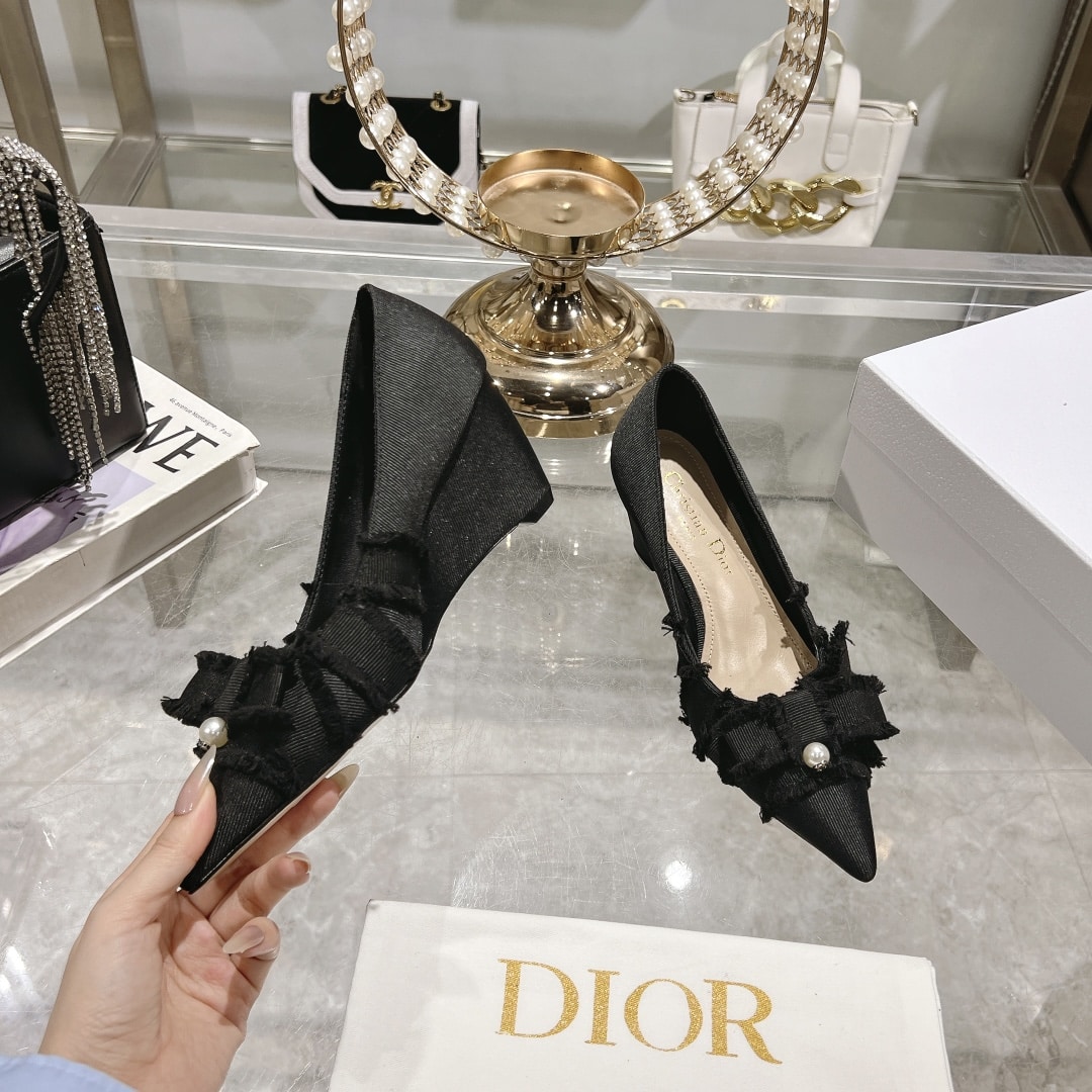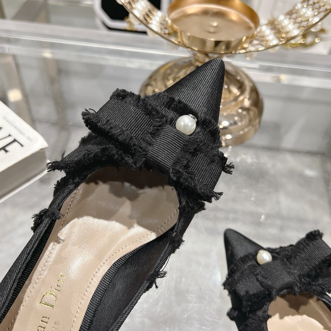 DIOR ADIORABLE PUMPS FRINGED GROSGRAIN IN BLACK