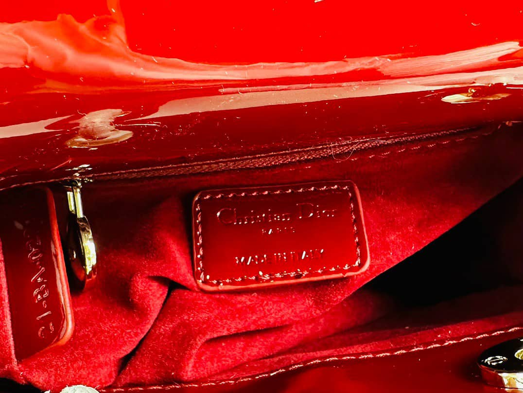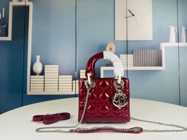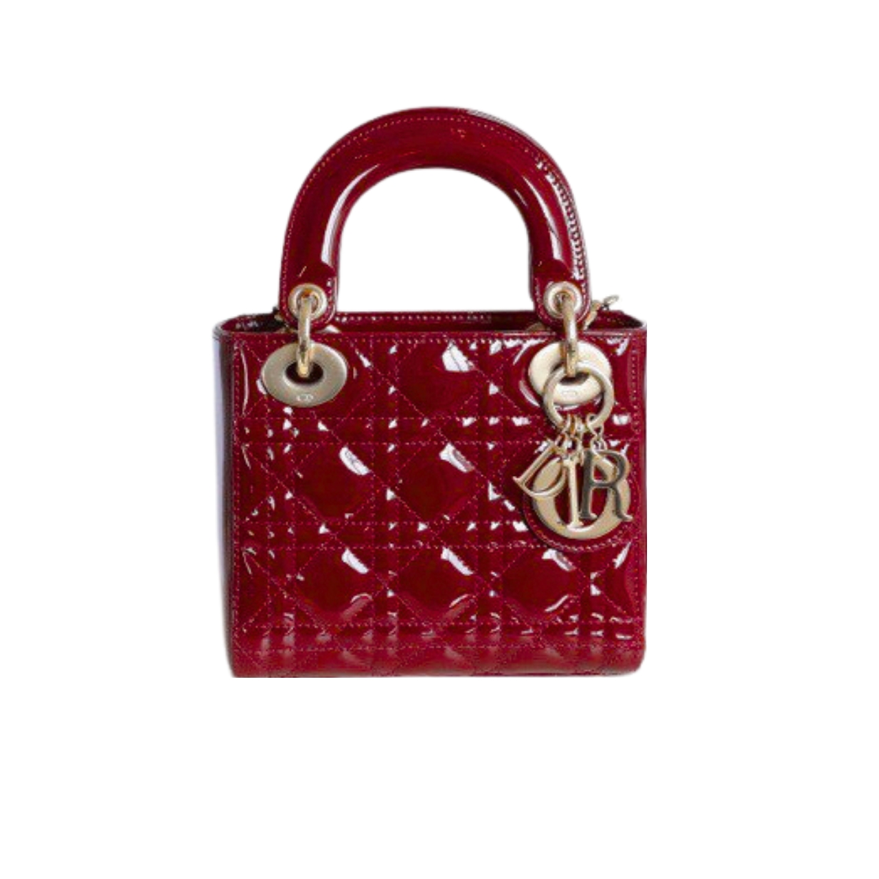 DIOR MEDIUM LADY DIOR BAG BORDEAUX PATENT CANNAGE BURGUNDY 21CM
