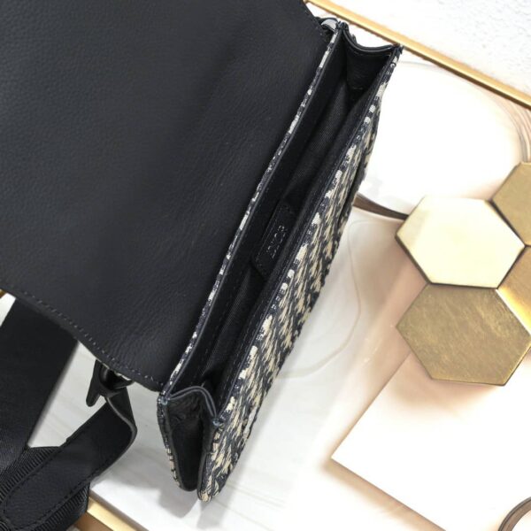 DIOR OBLIQUE CANVAS AND LEATHER SADDLE POUCH BAG BLACK 23CM