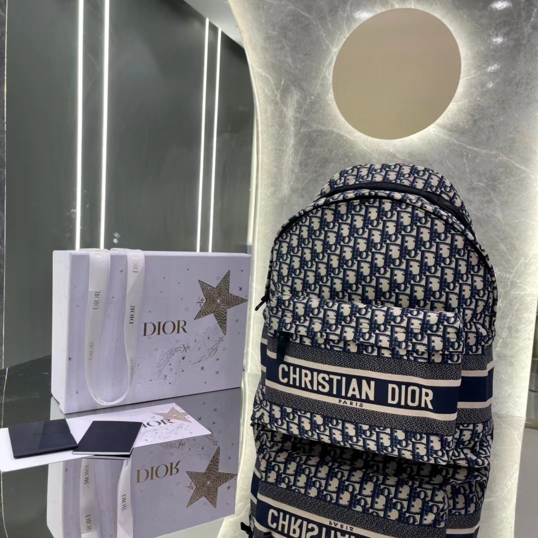 DIOR TRAVEL BACKPACK NAVY BLUE OBLIQUE JACQUARD M6104STZQ 35CM