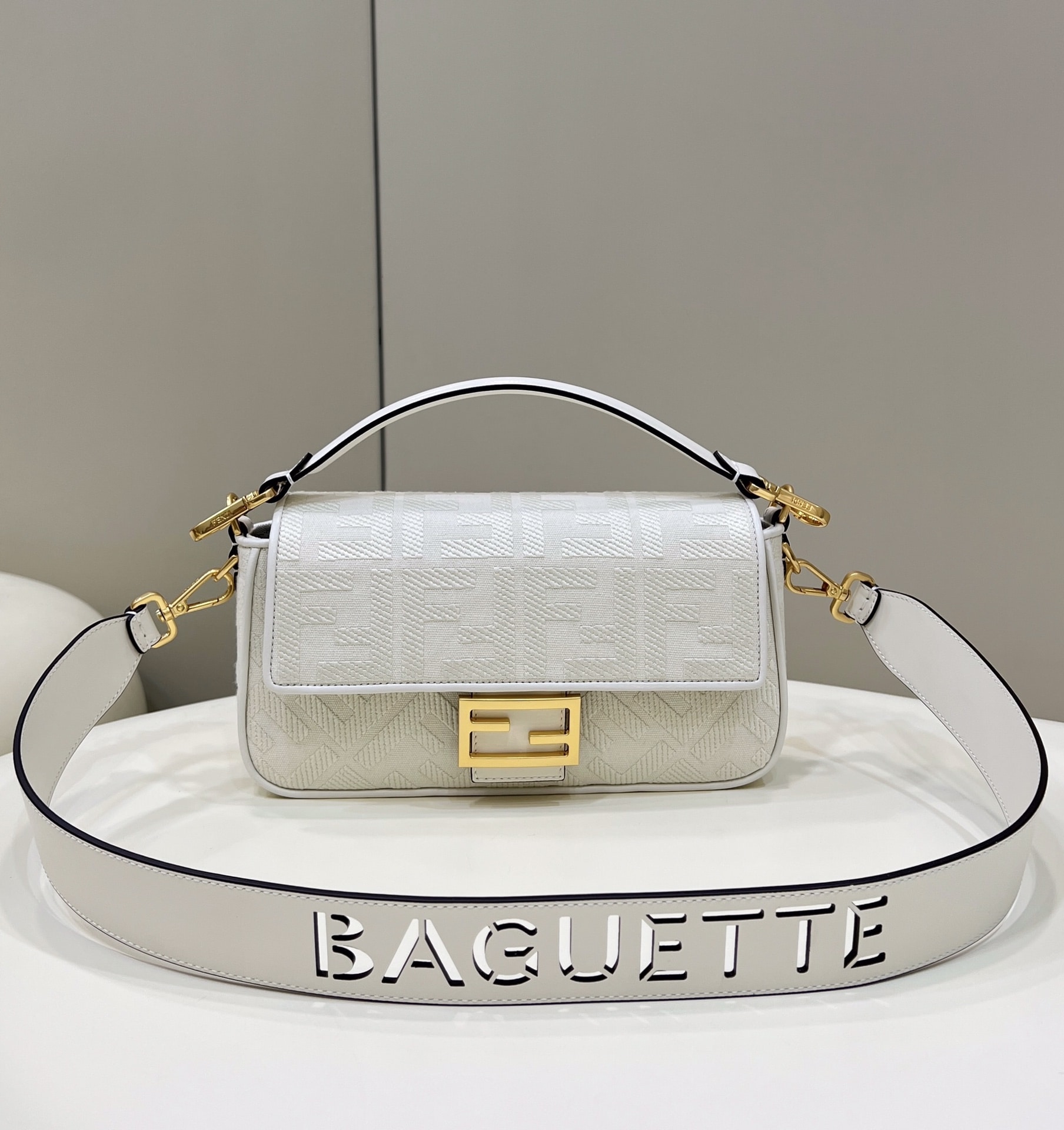 Fendi Baguette FF Canvas Bag / White 28Cm