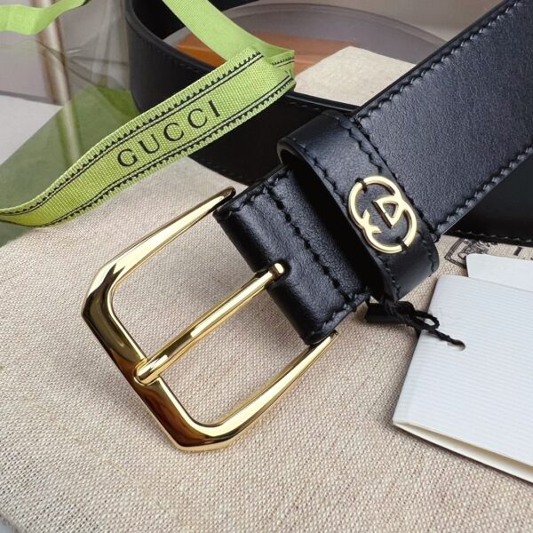 GUCCI BLACK BELT WITH SQUARE BUCKLE AND INTERLOCKING G 35MM
