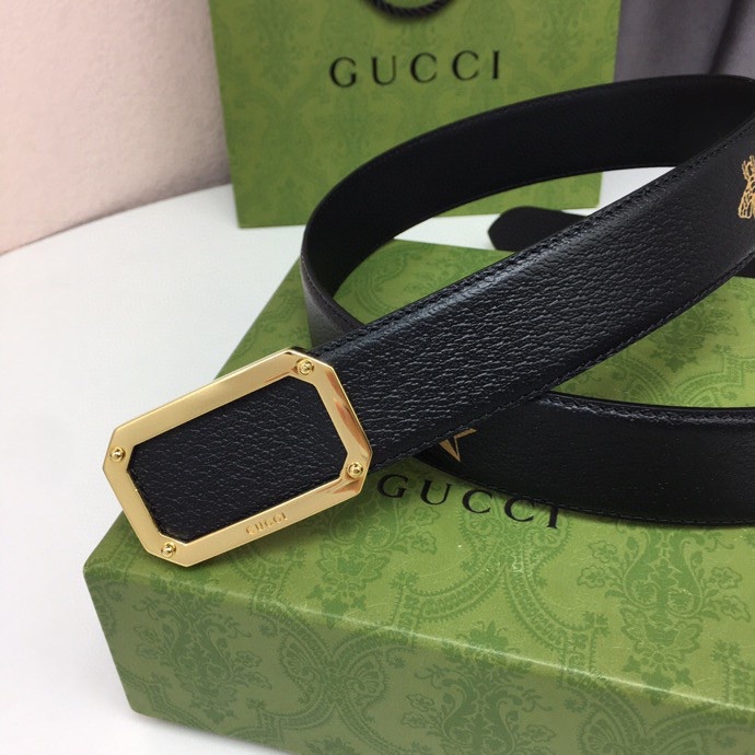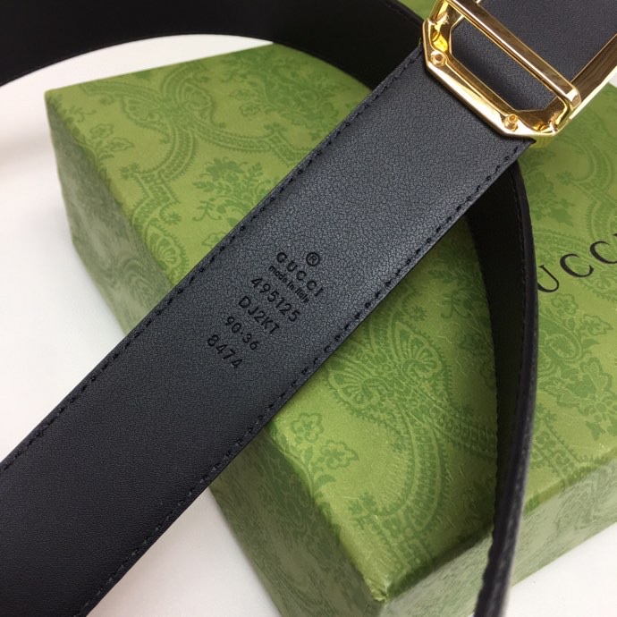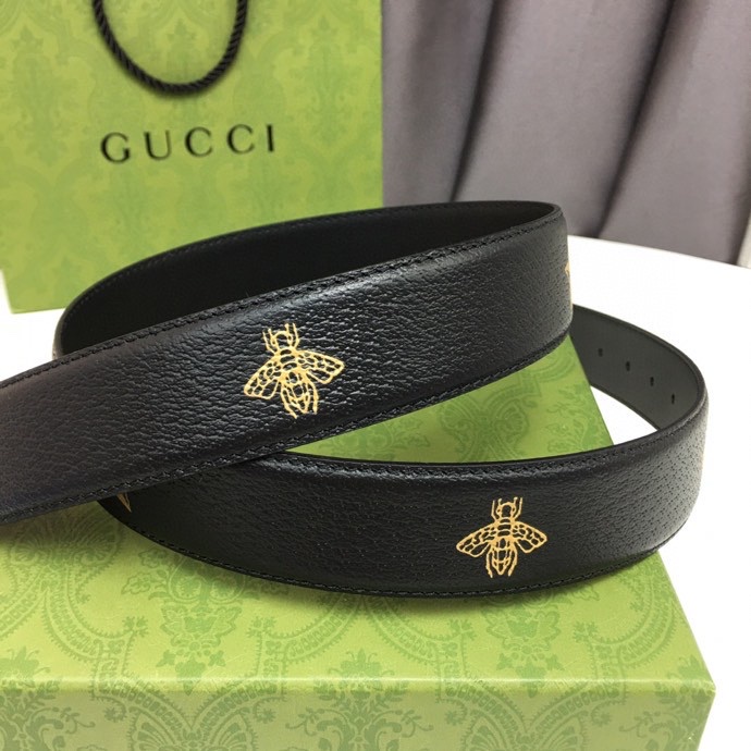 GUCCI BLACK BELT WITH SQUARE GOLD BUCKLE AND BEE STAR 35MM