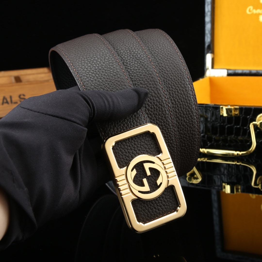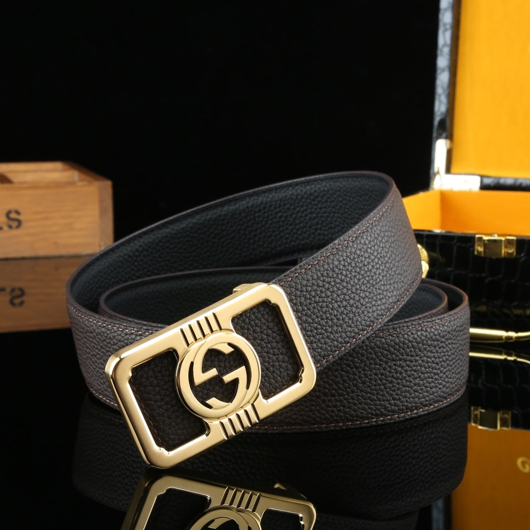 GUCCI COWHIDE DOUBLE G BUCKLE BELT GOLD TONE HARDWARE IN BLACK