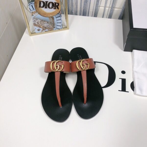 GUCCI DOUBLE G THONG LEATHER BROWN