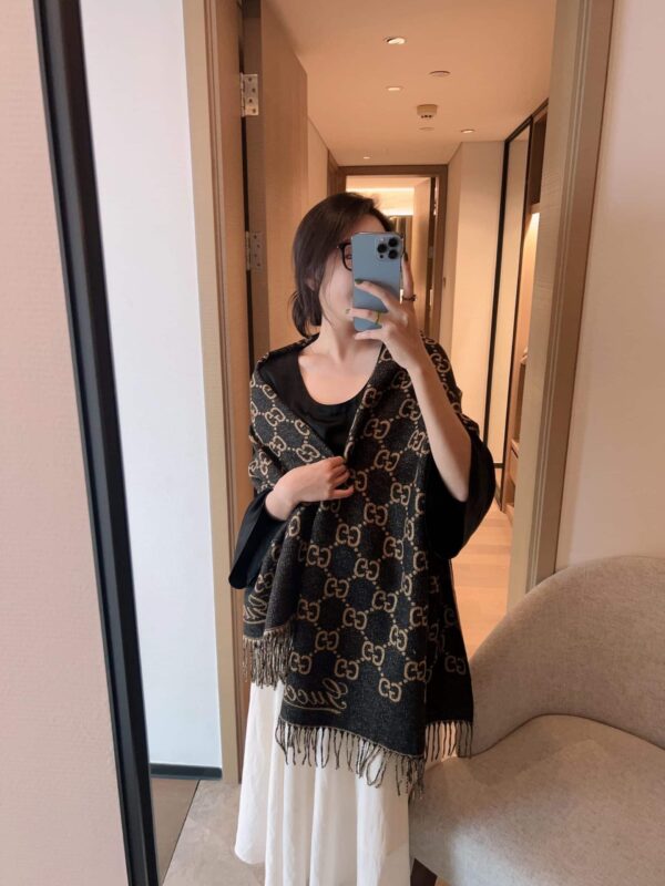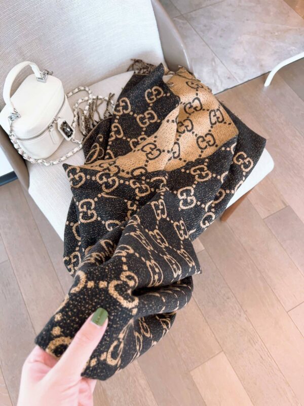 GUCCI GG JACQUARD WOOL SCARF BLACK AND BEIGE