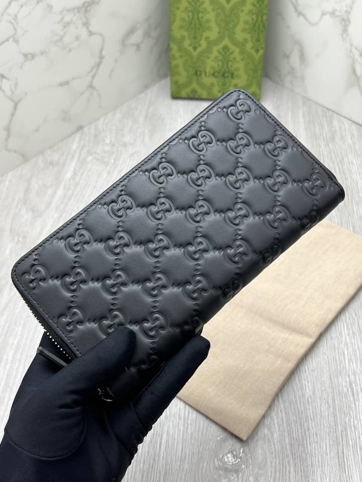 GUCCI GG SIGNATURE ZIP WALLET BLACK 19CM 625558 1W3AN 1000