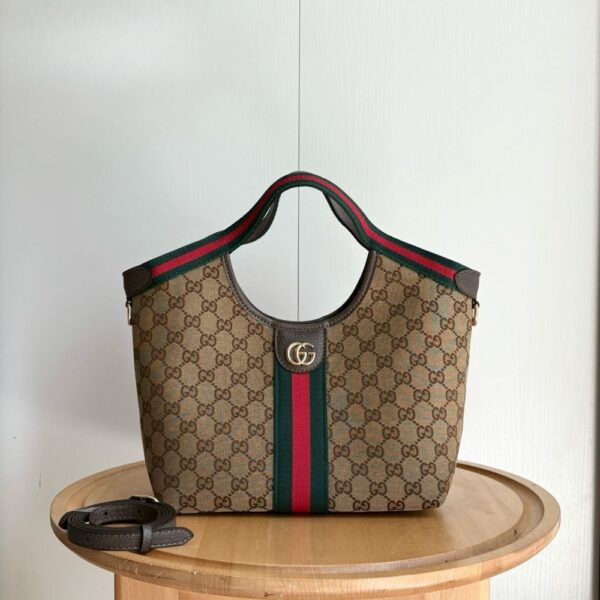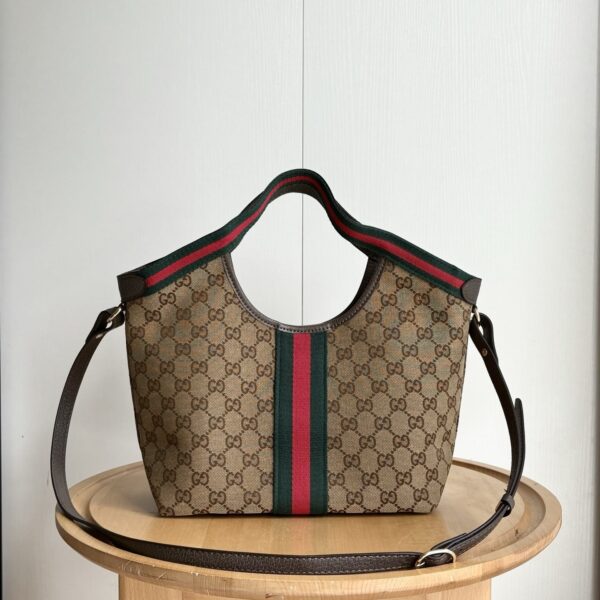 GUCCI GIGLIO SMALL TOTE BAG GG CANVAS DARK BROWN 25CM 860845 AAF8L 2547