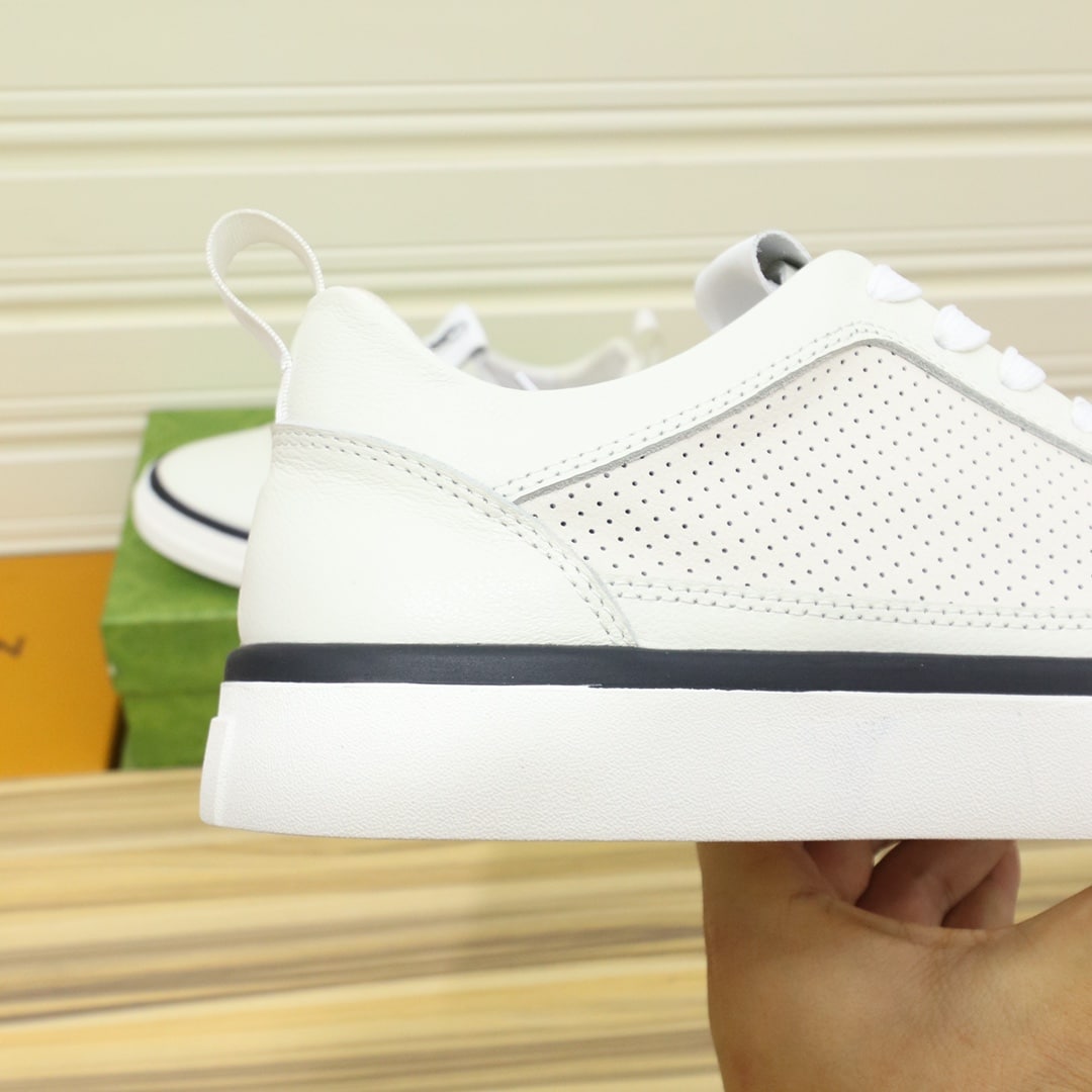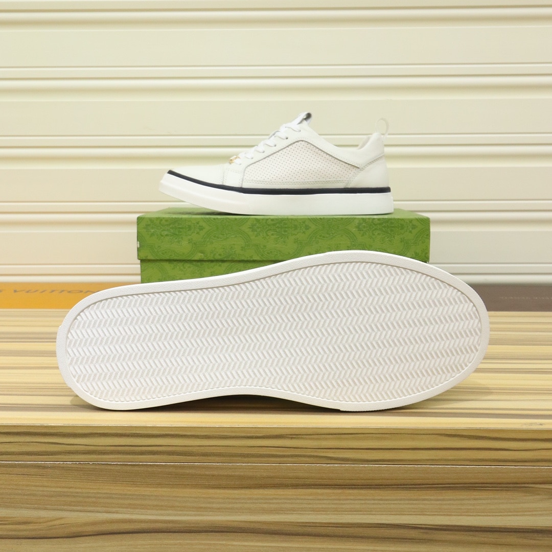 GUCCI MEN’S PLATFORM SNEAKERS LEATHER WHITE WITH BLACK EDGE
