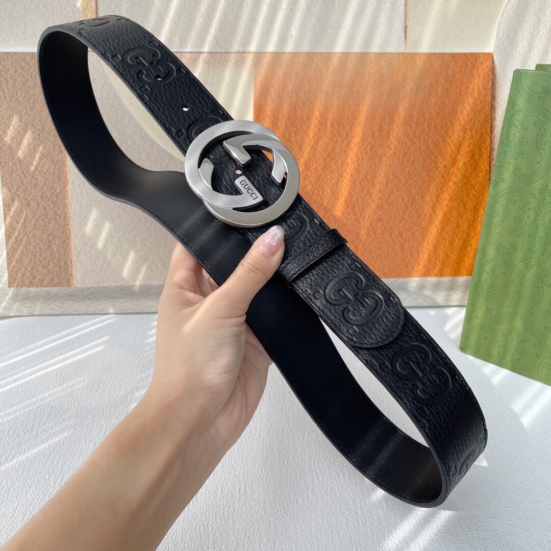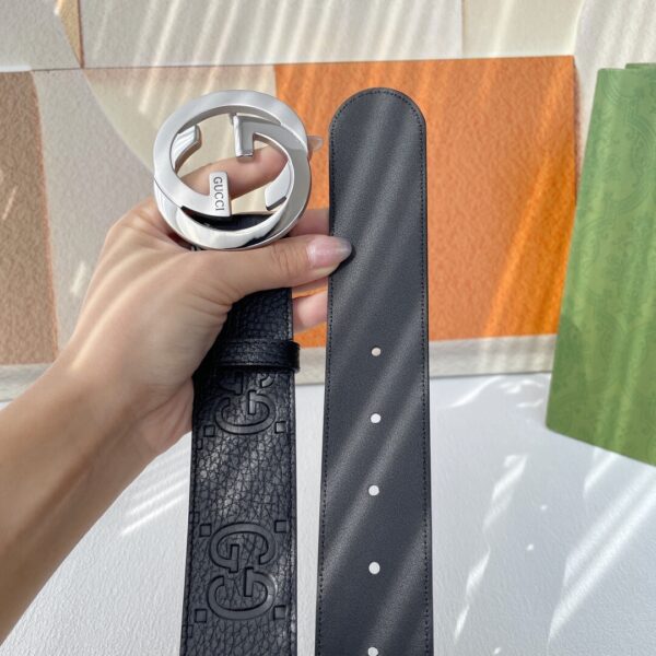 GUCCI MEN’S REVERSIBLE GG BELT SILVER HARDWARE BLACK 40MM