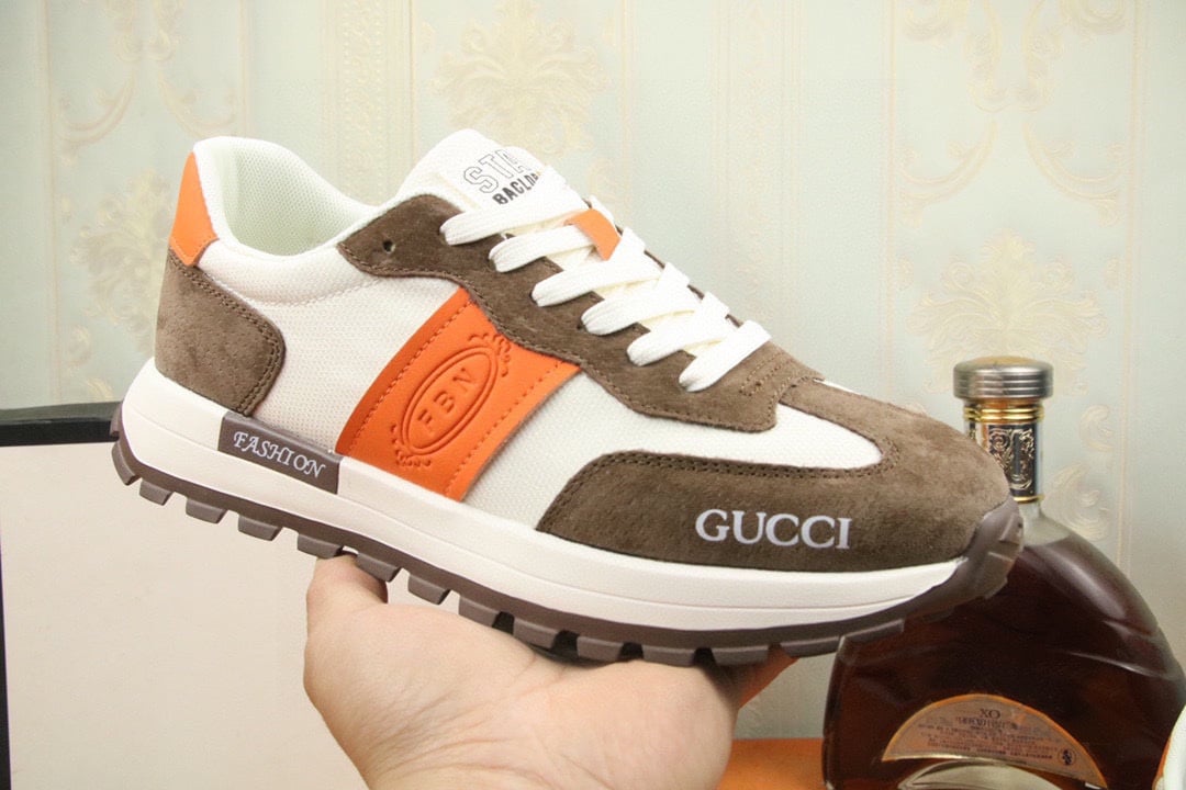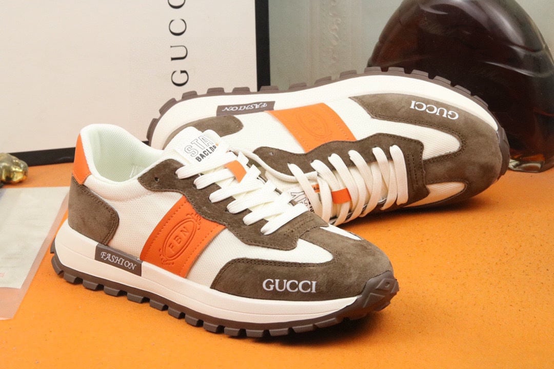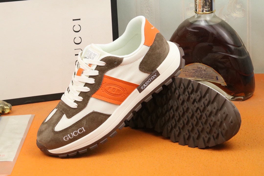 GUCCI MEN’S SNEAKER LOW TOP BROWN AND ORANGE