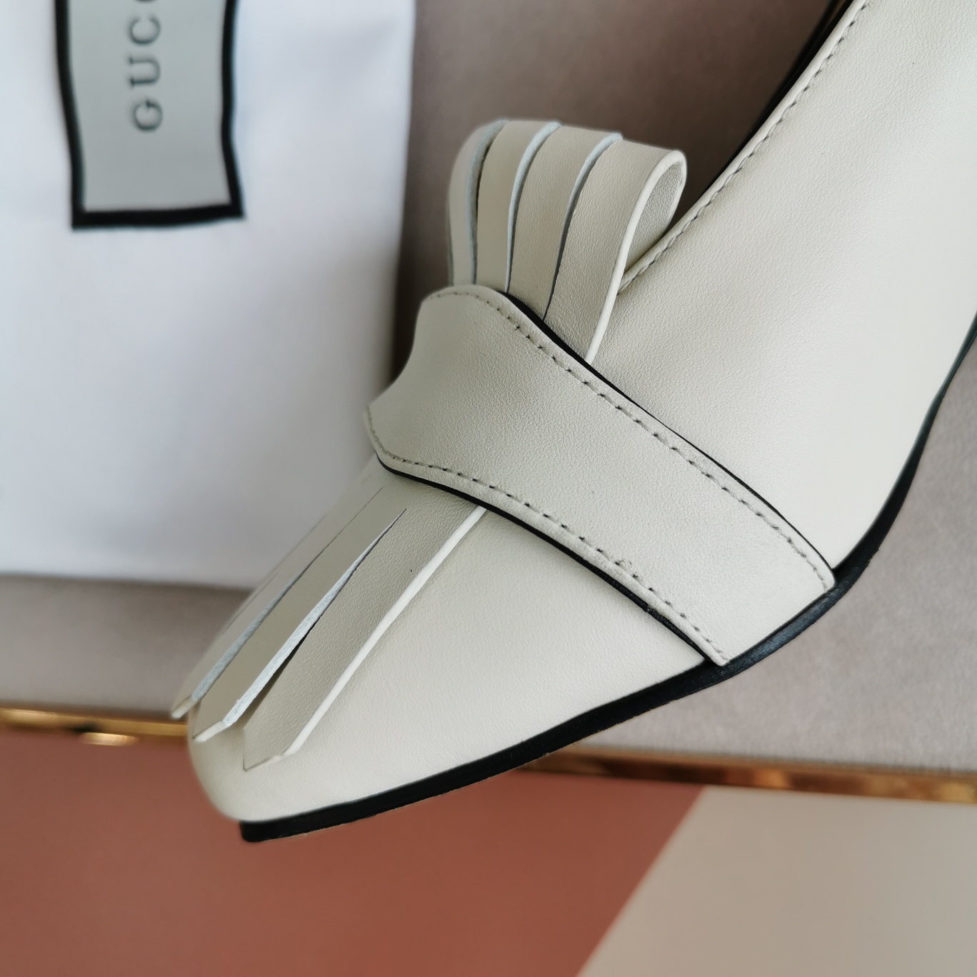 GUCCI MID HEEL PUMP LEATHER WHITE 408208 C9D00 9022