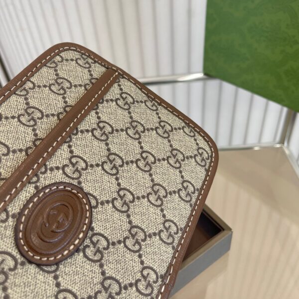 GUCCI MINI BAG WITH INTERLOCKING G IN GG SUPREME BROWN 22CM