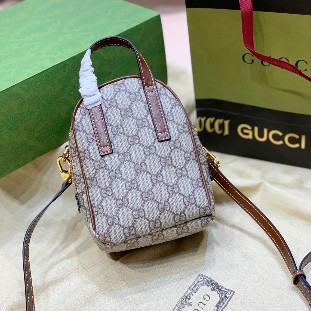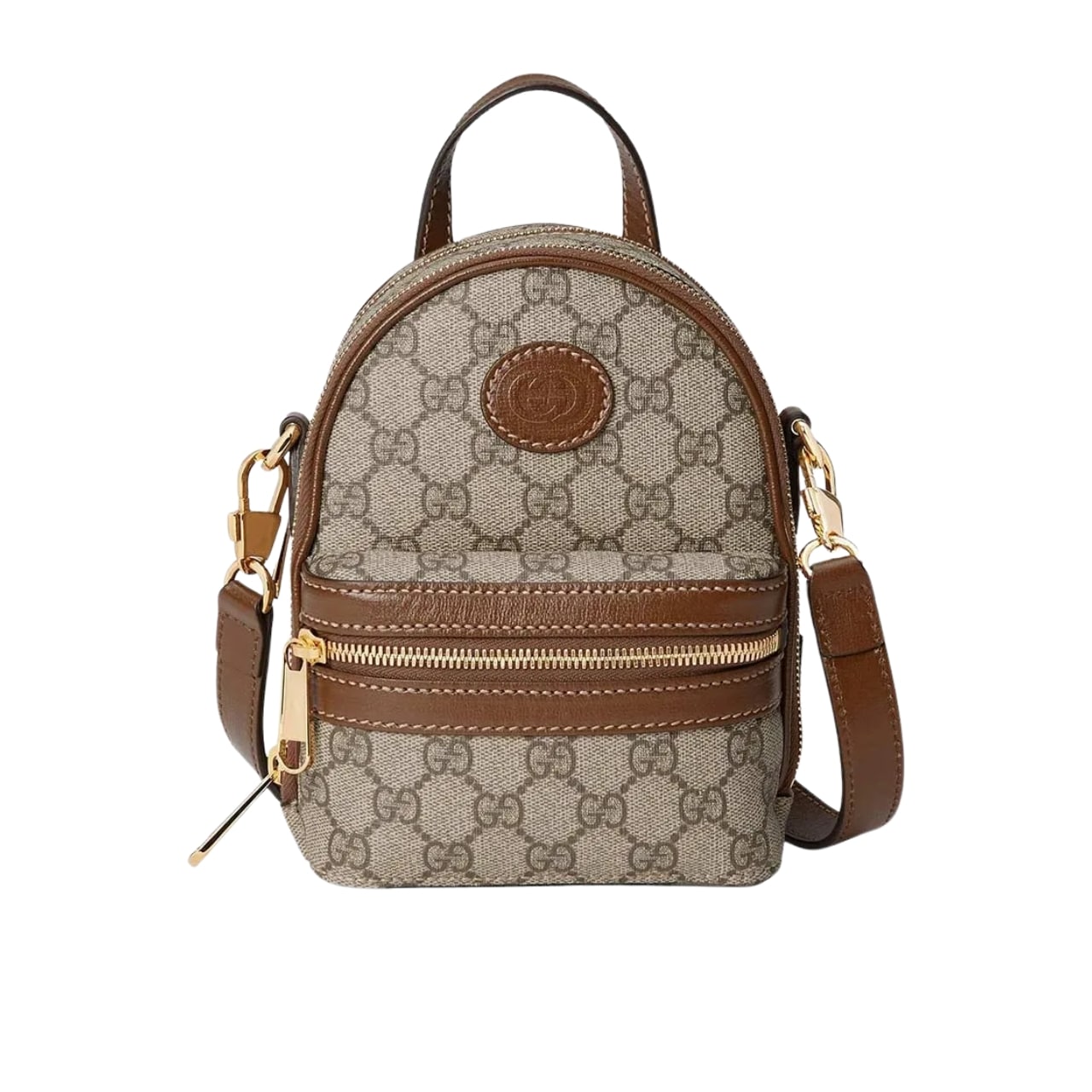 GUCCI MINI CANVAS INTERLOCKING G BACKPACK BROWN 19CM