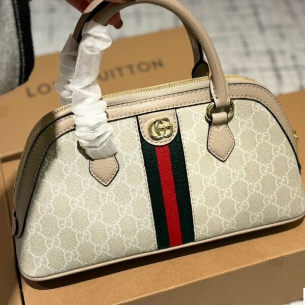 GUCCI OPHIDIA SMALL TOP HANDLE BAG BEIGE AND WHITE 30CM