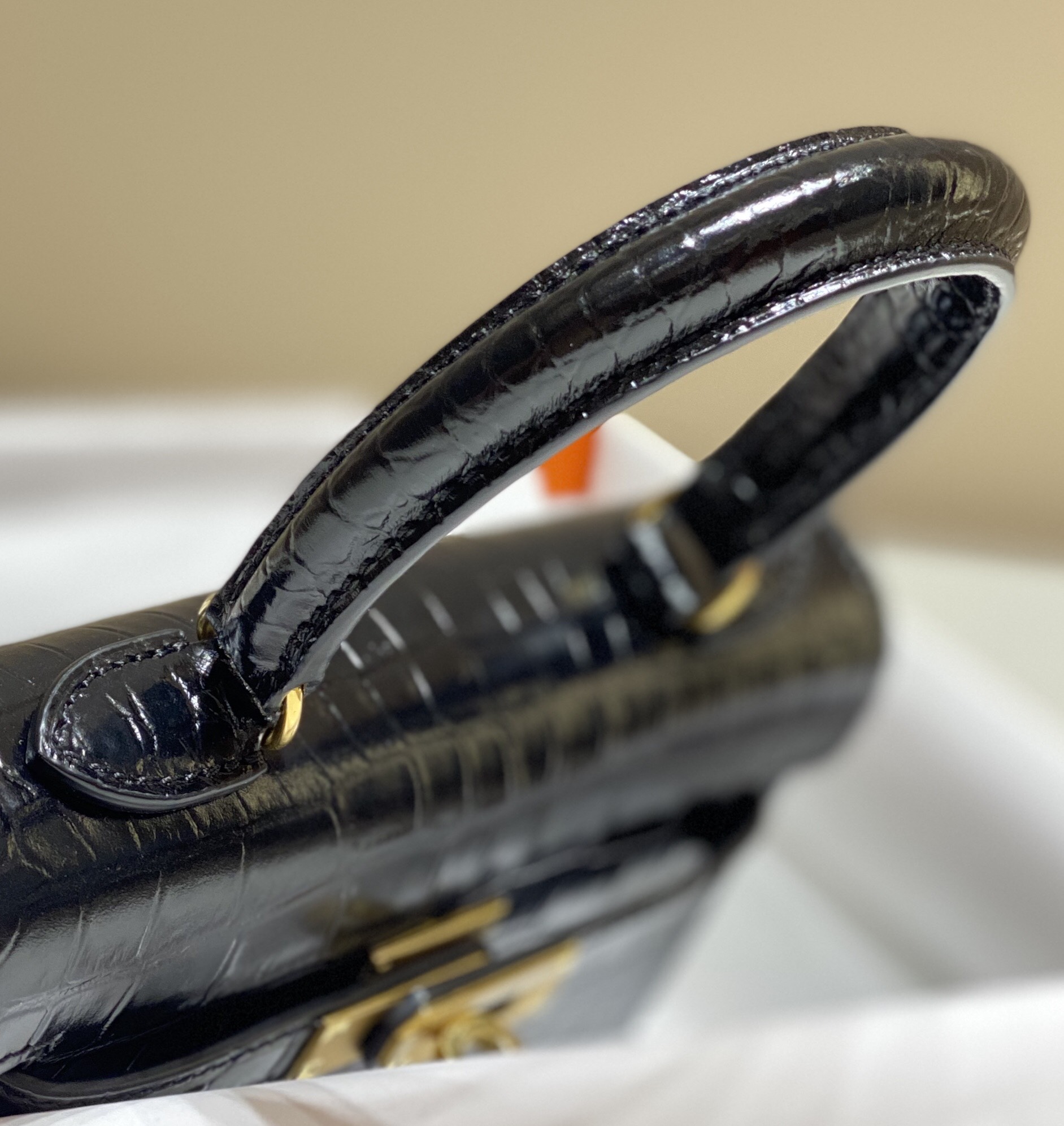- Gold-toned hardware