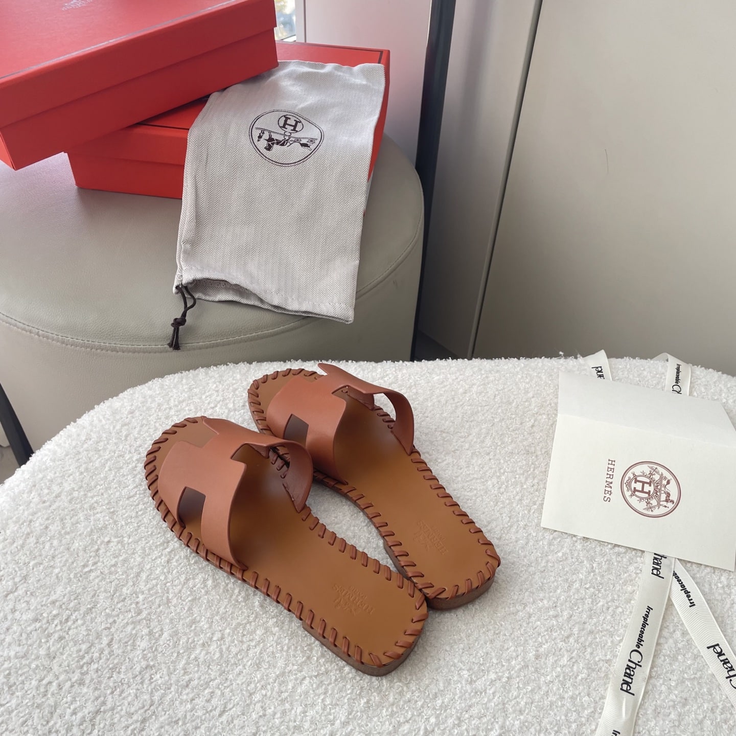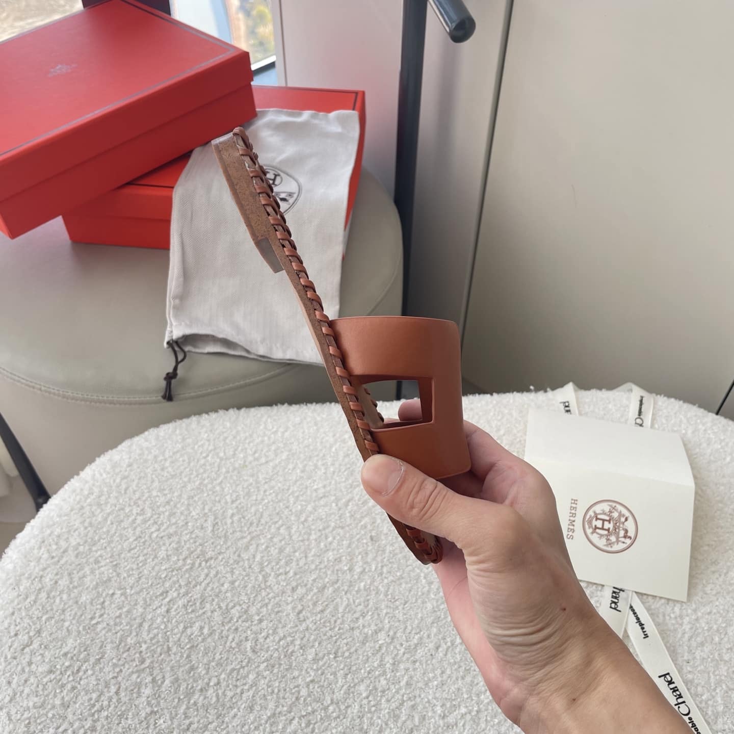 HERMÈS ORAN SANDALS STITCHING IN BROWN