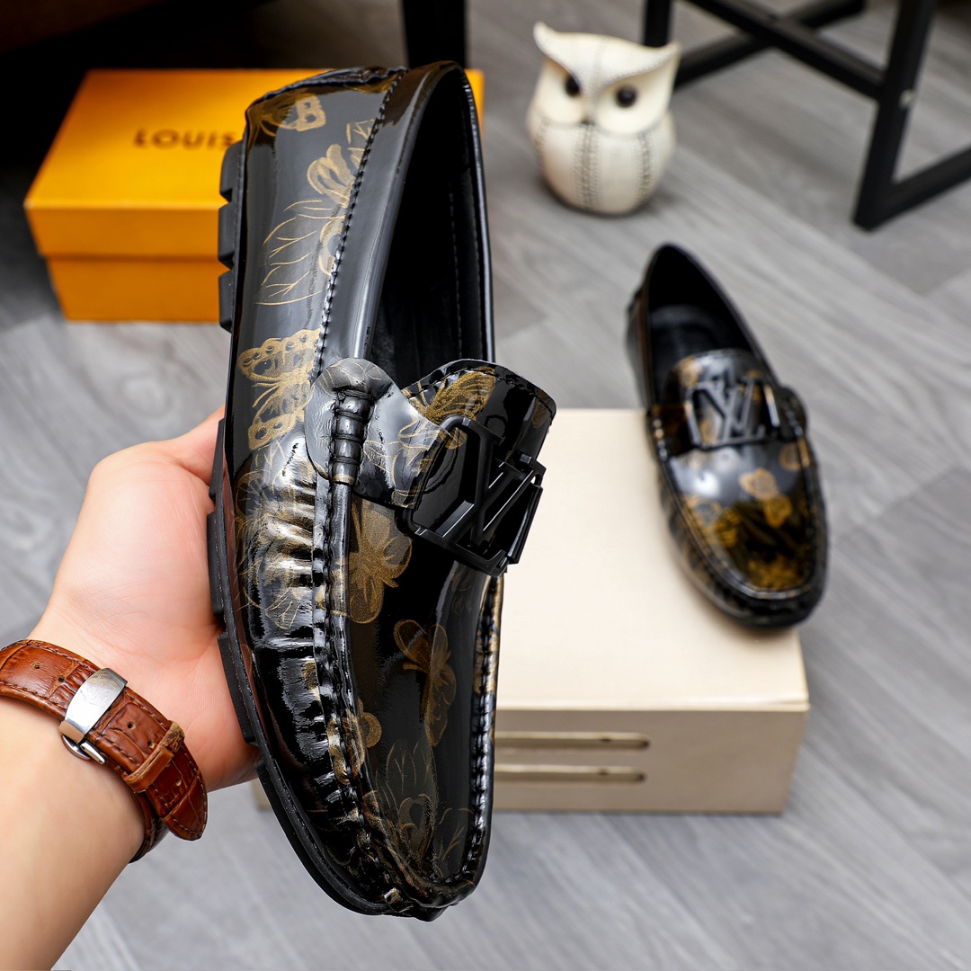 LOUIS VUITTON LOAFER POLISH LEATHER WITH BUTTERFLY PATTERN IN BLACK