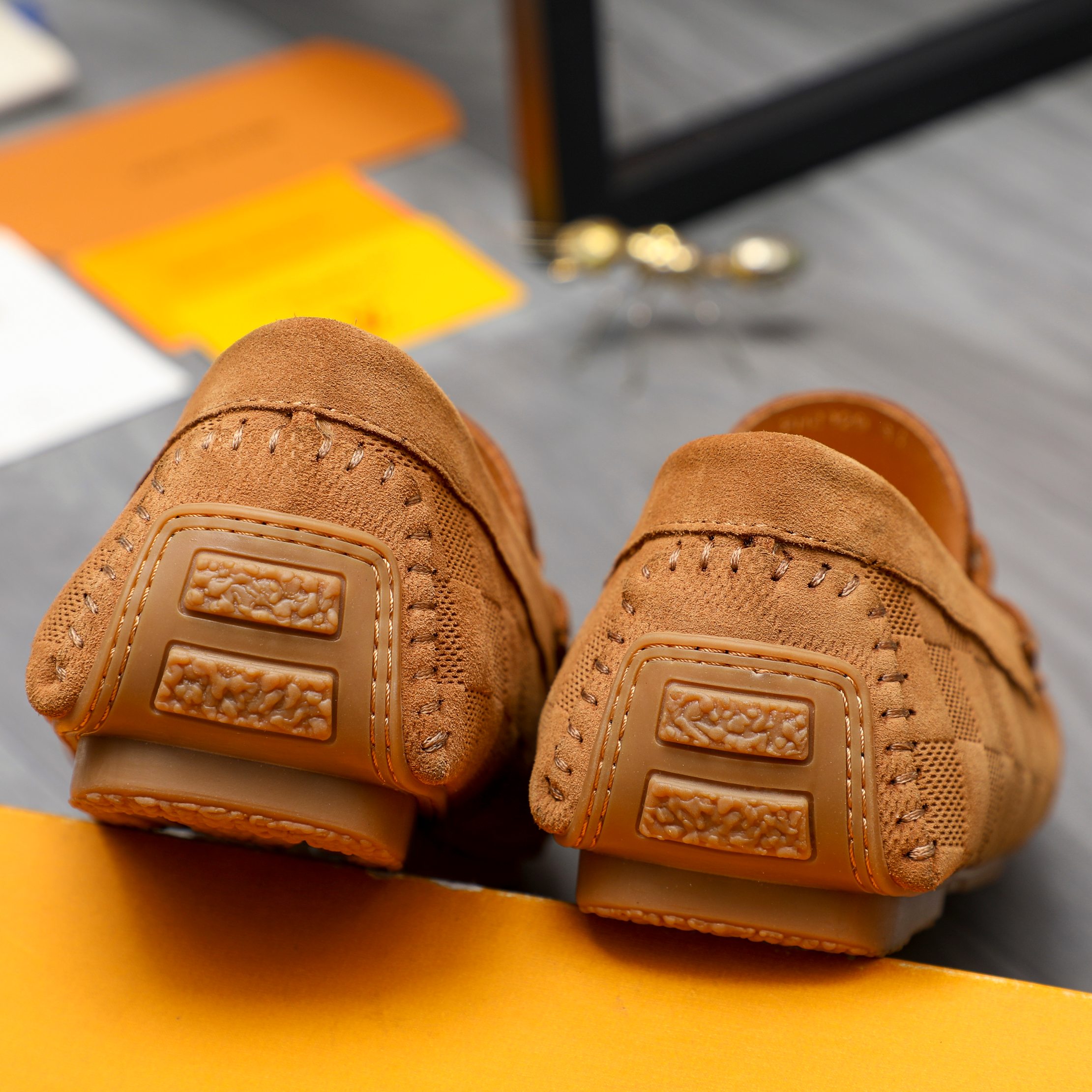 LOUIS VUITTON LV DAMIER SUEDE LEATHER LOAFERS IN TAN