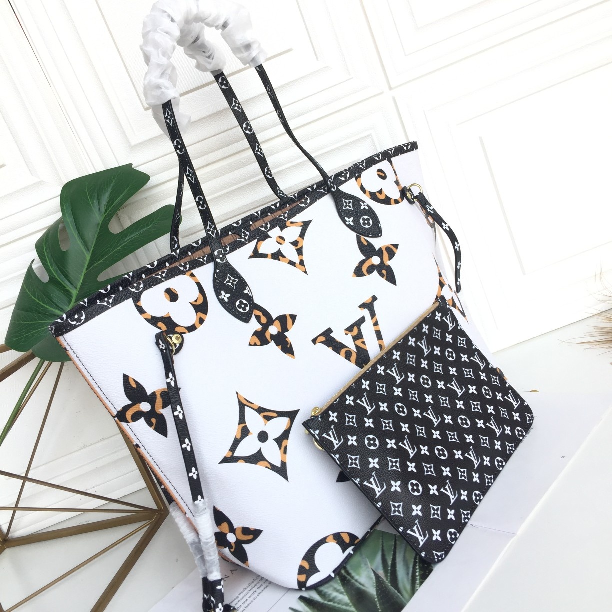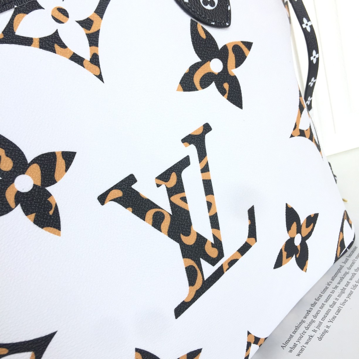 - Louis Vuitton’s signature Neverfull gets a wild new twist with a giant animal print Monogram in a reversible ivory and havana beige Coated Canvas