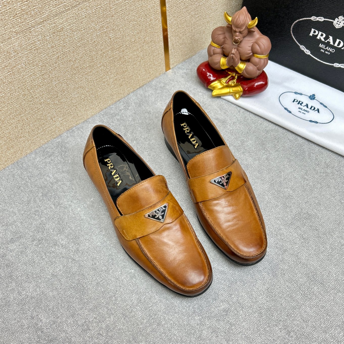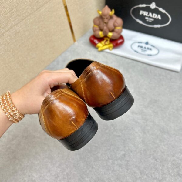 PRADA BRUSHED LEATHER LOAFERS TRIANGLE LOGO BROWN