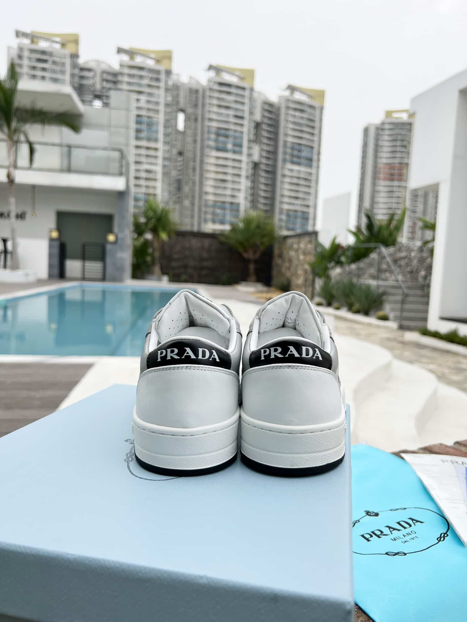 PRADA DISTRICT PERFORATED LEATHER SNEAKERS GREY 1E790M3LJ6F0A4CF030