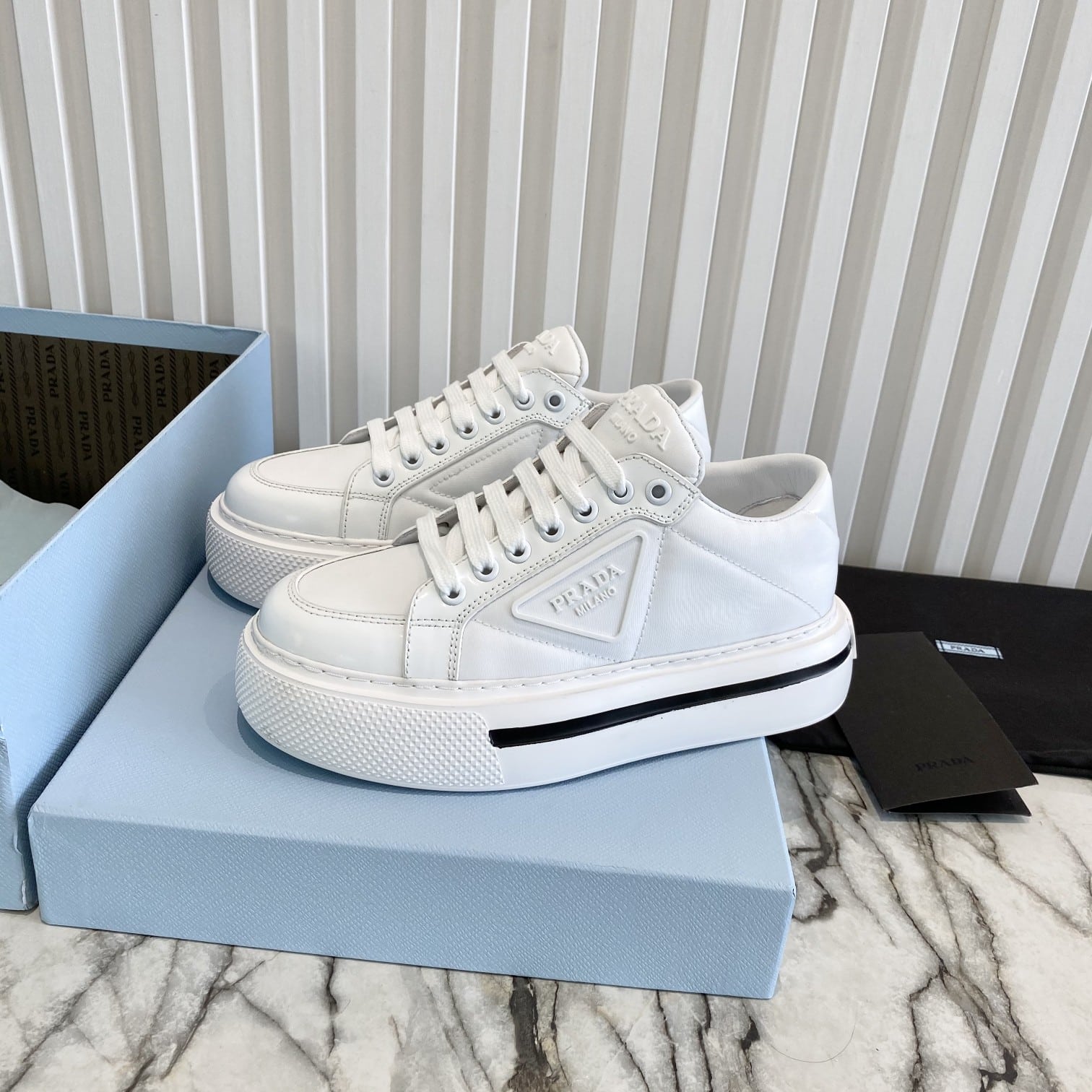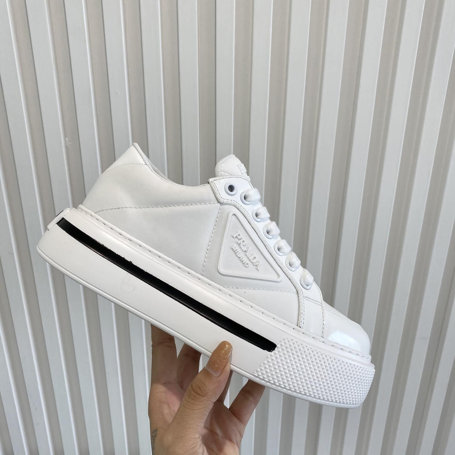 PRADA MACRO RE-NYLON AND BRUSHED LEATHER SNEAKERS WHITE 2EG3763LF5F0009