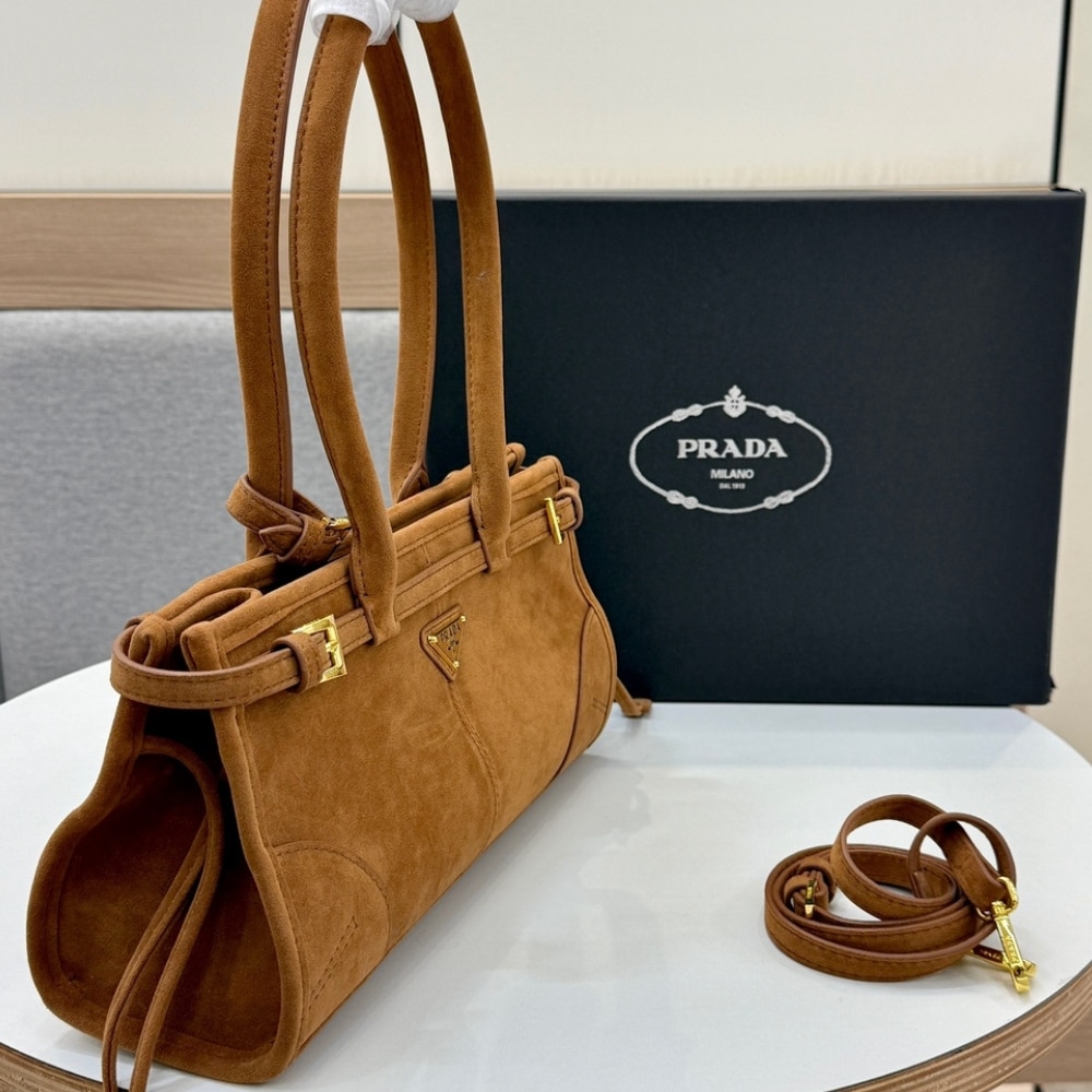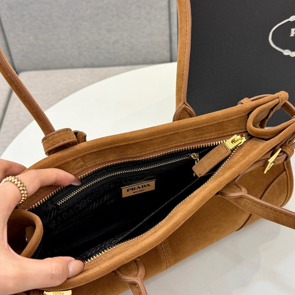 PRADA MEDIUM SUEDE HANDBAG CINNAMON 32CM 1BA426 2C4S F0401 V MOO