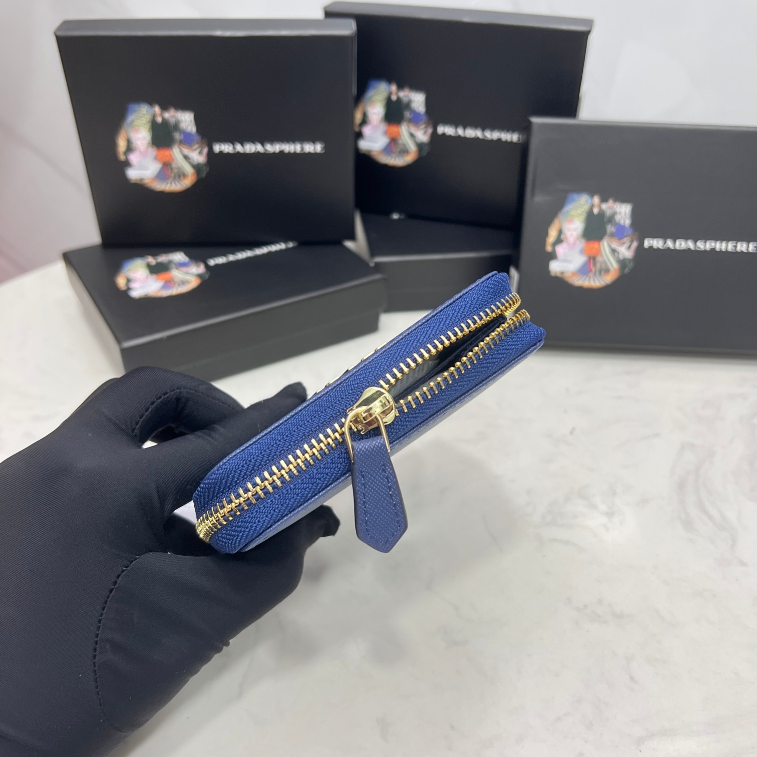 Prada Saffiano Leather/10cm Coin Purse Bluette Wallet 1mm268 Qwa F0016