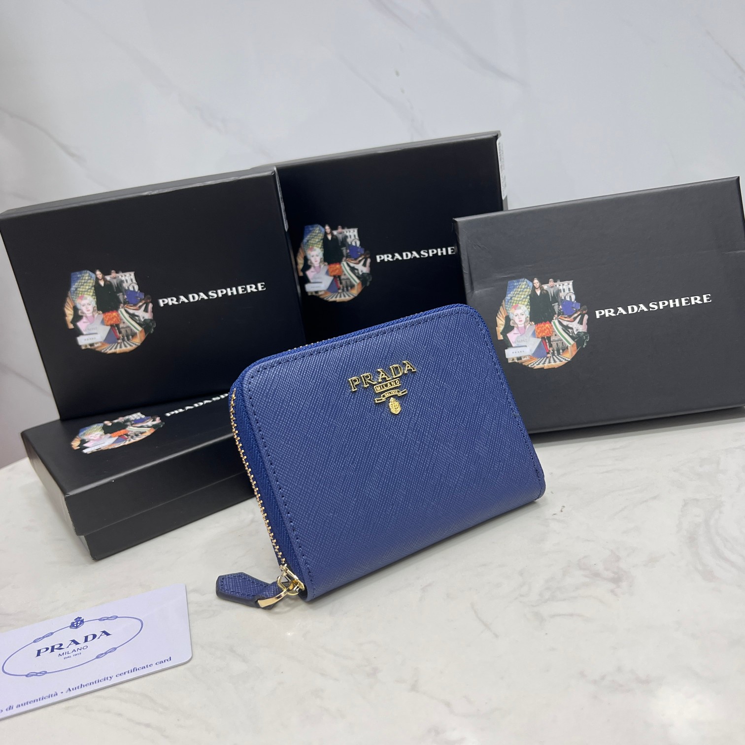 PRADA SAFFIANO LEATHER COIN PURSE BLUETTE WALLET 10CM 1MM268 QWA F0016