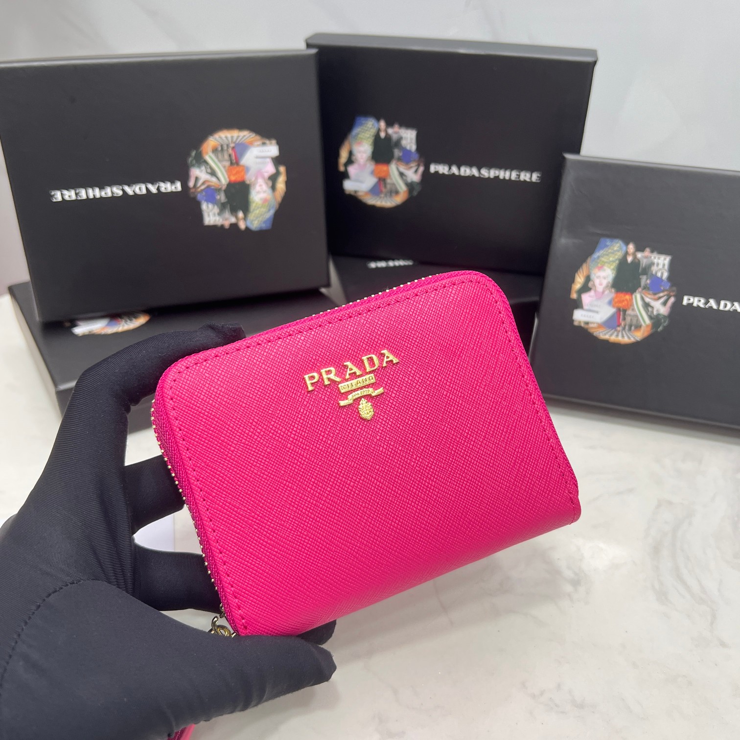 Prada Saffiano Leather/10cm Coin Purse Peony Pink Wallet 1MM268 QWA F0505