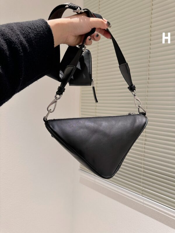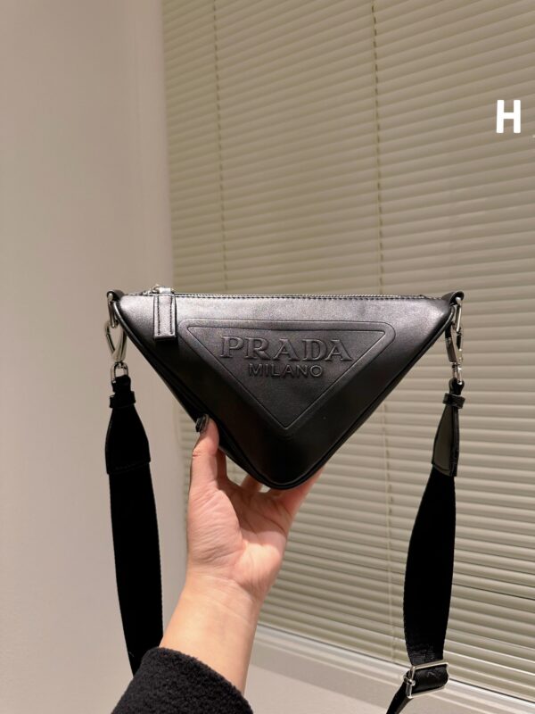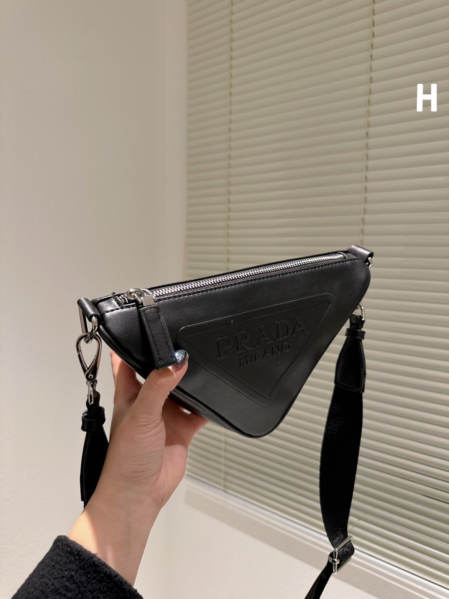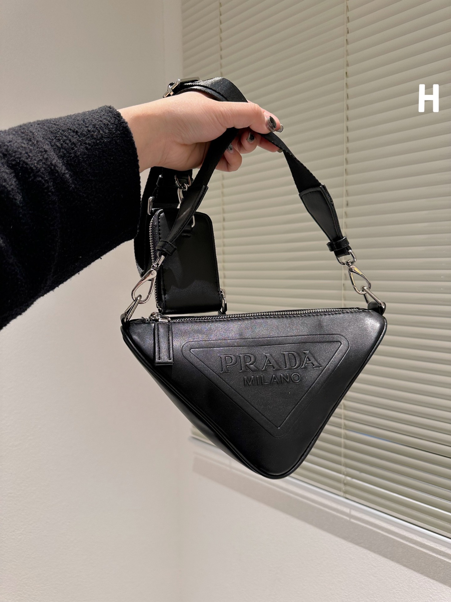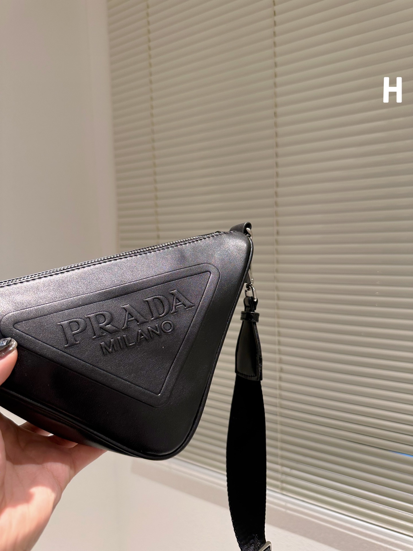 Prada/27cm Triangle Leather Mini Bag Black 1BH190_2BYA_F0002_V_BRO