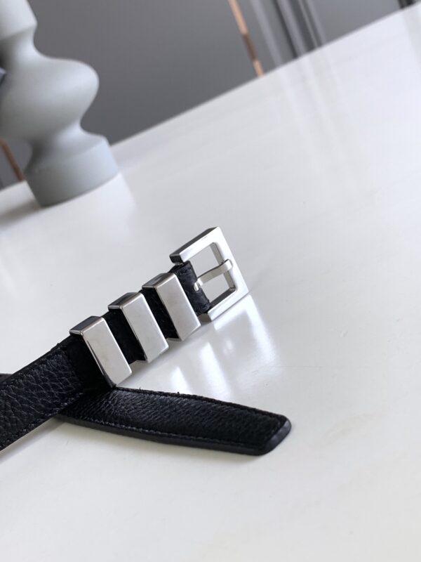 SAINT LAURENT BLACK 3 PASSANTS BLACK AND SILVER BELT 3146292551
